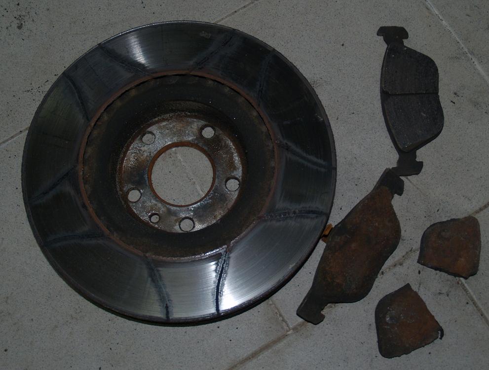 brzdové destičky ATE a nová brzdovka, bo varianta kotouče Brembo s drážkama + desky EBC Greenstuff spolu se solí a teplem garáže, dopadla takto: