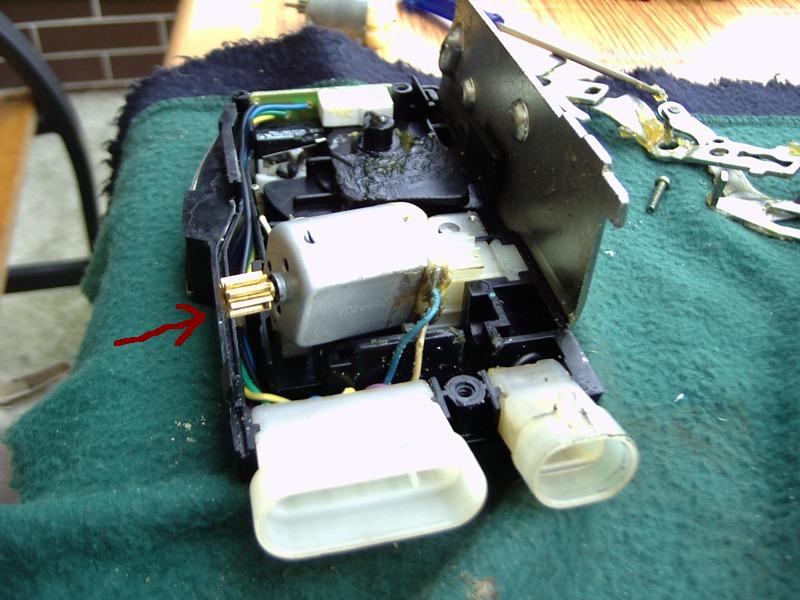 ..tak jsem konečně vyřešil problém s občasným odemykáním a zamykáním mé Alfiny. Odešel motůrek u spolujezdcových dveří. Není to až tak těžké, jen když se to dělá poprvé, jako u všeho;-) Dlouho jsem nevěděl čím to je, rozebíral jsem středovej panel (viz. toto téma), hledal jednotku centrálu atd. Nakonec jsem rozebral dveře, vyjmul celej zámek dveří a zjistil, že ten motůrek se vypálil a dělal neplechu. Vopruz největší je, že se musí odvrtat dva pevný spoje(nevim jak se tomu řiká, něco jako nejty, prostě hliníková tyčinka na obou stranách rozklepaná na obr. modrá a červená šipka), odšroubovat tři šroubky a neulomit asi čtyři pacičky;-) Jinak je to v poho. Dobrý a celkem kvěcný je, že u toho jednoho odvrtaného nejtku je závit(červená šipka), takže se tam potom dá dát normálně desítka šroub který to celý krásně zpevní a dá se to potom kdykoliv zase rozebrat. Drátky na motůrku se přepájí a taky sranda je přehodit to ozubené kolečko na něm, chce to trochu šikovnosti a je to. Použil jsem motůrek z jiného centrálu a vše opět funguje a já jsem šťastnej, že ji mužu nechat chvíli bez dozoru