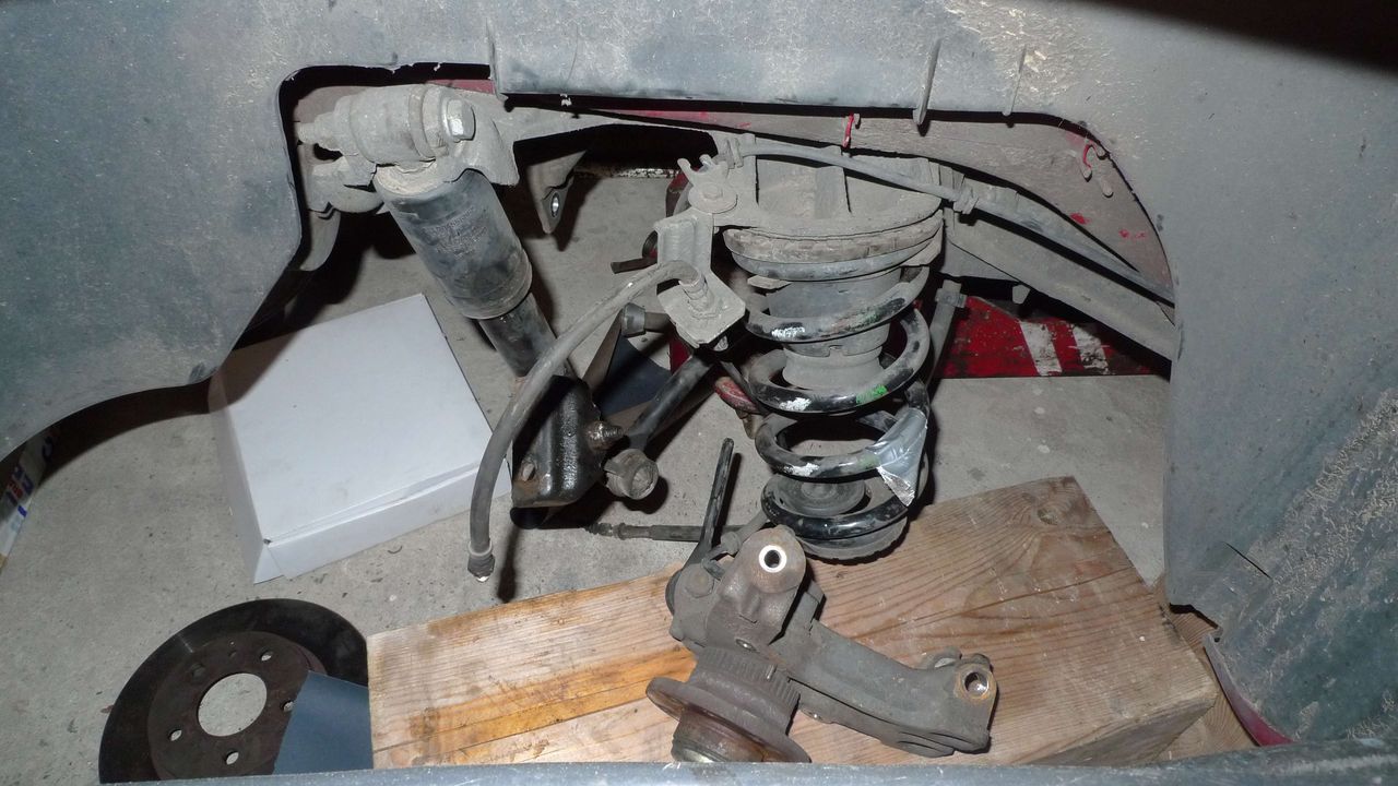 Pred 14 dny sme auto postavily na spalky a vyndali brzdy vsude a zadni ramena. Diky Kurkynovi sme vylisovali stare silentboky a unibaly (foto z teto casti nemam)...