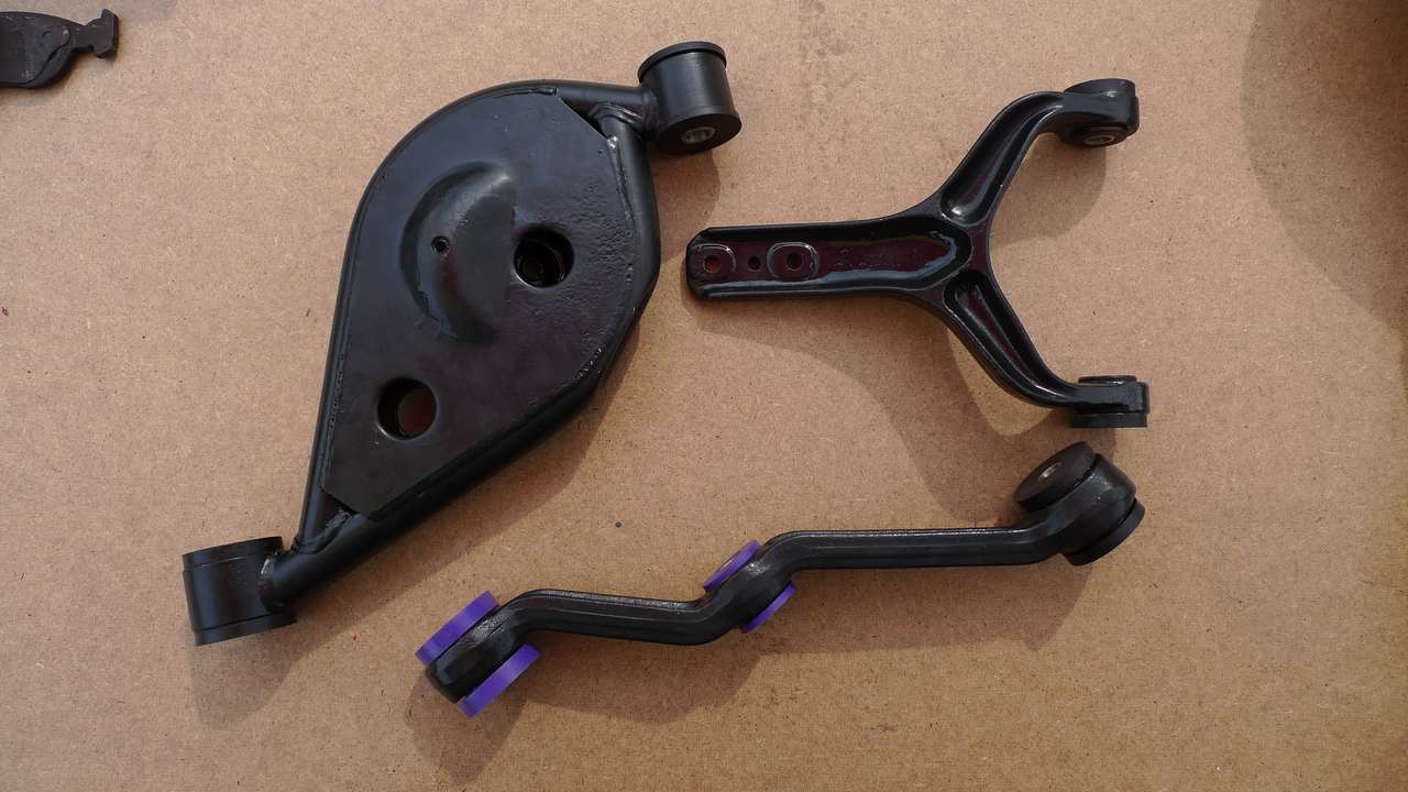 Pred 14 dny sme auto postavily na spalky a vyndali brzdy vsude a zadni ramena. Diky Kurkynovi sme vylisovali stare silentboky a unibaly (foto z teto casti nemam)...