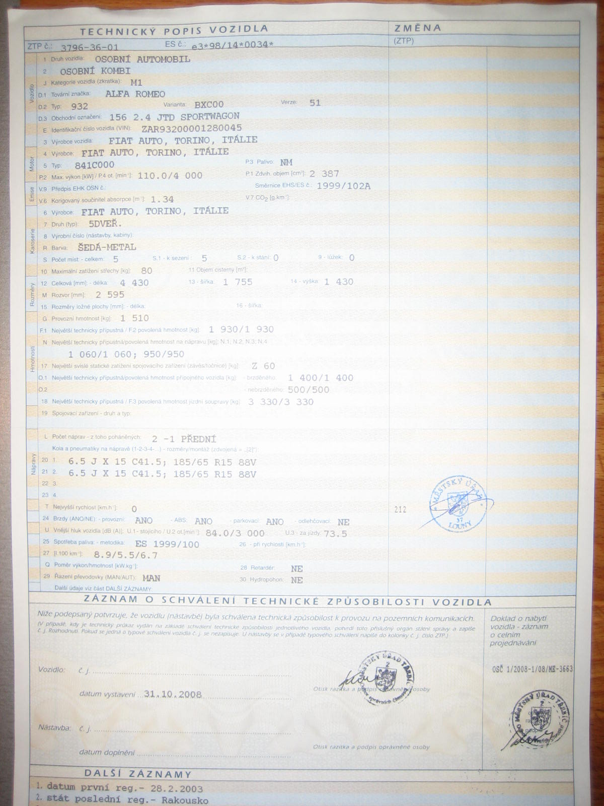 jinak v brně jsme pohlížel 156 2,0TSselespeed LPG a kdyby byla zajímavější cena, tak by určitě stála za hřích, sice měla asi dost dětských nemocí, ale vypadala slušně na to jakej to byl rok