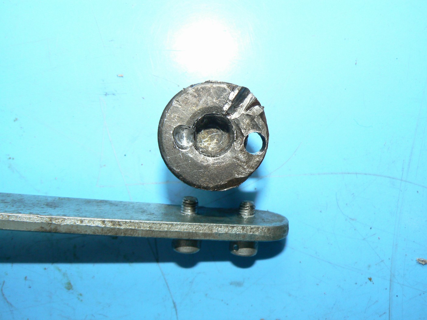Tak dokonáno. nakonec jsem do lemu vyvrtal 2 dírky, upravil na to spec. klíč a šlo to jako po másle. Ale až na podruhý. Nejprve jsem zvolil díry 4 mm a do klíče našrouboval čtverky šroubky, ale jak jsem to nasadil a zabral tak šroubky se ucvakly, čínskej šmejd. Tak znova, převrtal jsem to na 5ky, dal tam kalený imbusáky, nasadil , a hotovo. Povolený. Na starém šroubu je vidět, že už soudruzi v německu, odkud Alfice pochází experimentovali a dělali tam šlic pro sekáč. Kdyby používali klíče k tomu určený, nebyl by problém. A měděná podložka co tam dali jako těsnění nebyla vyžíhaná, tak to i prd těsnilo. Asi to hošani nevěděli. Přikládám 2 fota, pro poučení. Jinak zátka stojí v Motortecu u Globusu /Brno/ 318 Kč.