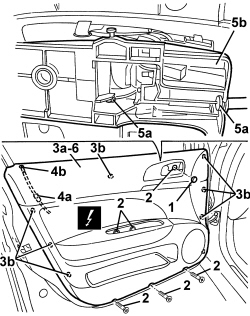 4. Disconnect the electrical connection (4a) for the anti-theft warning light (4b) (driver''s door only).