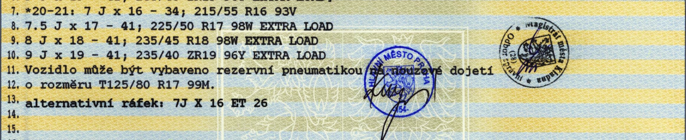 Dodali mi i typový list, tak si je raději nechám příležitostně zapsat do TP ač pochybuju, že by nějaký policajt poznal, že mají nižší ET než předepsané...