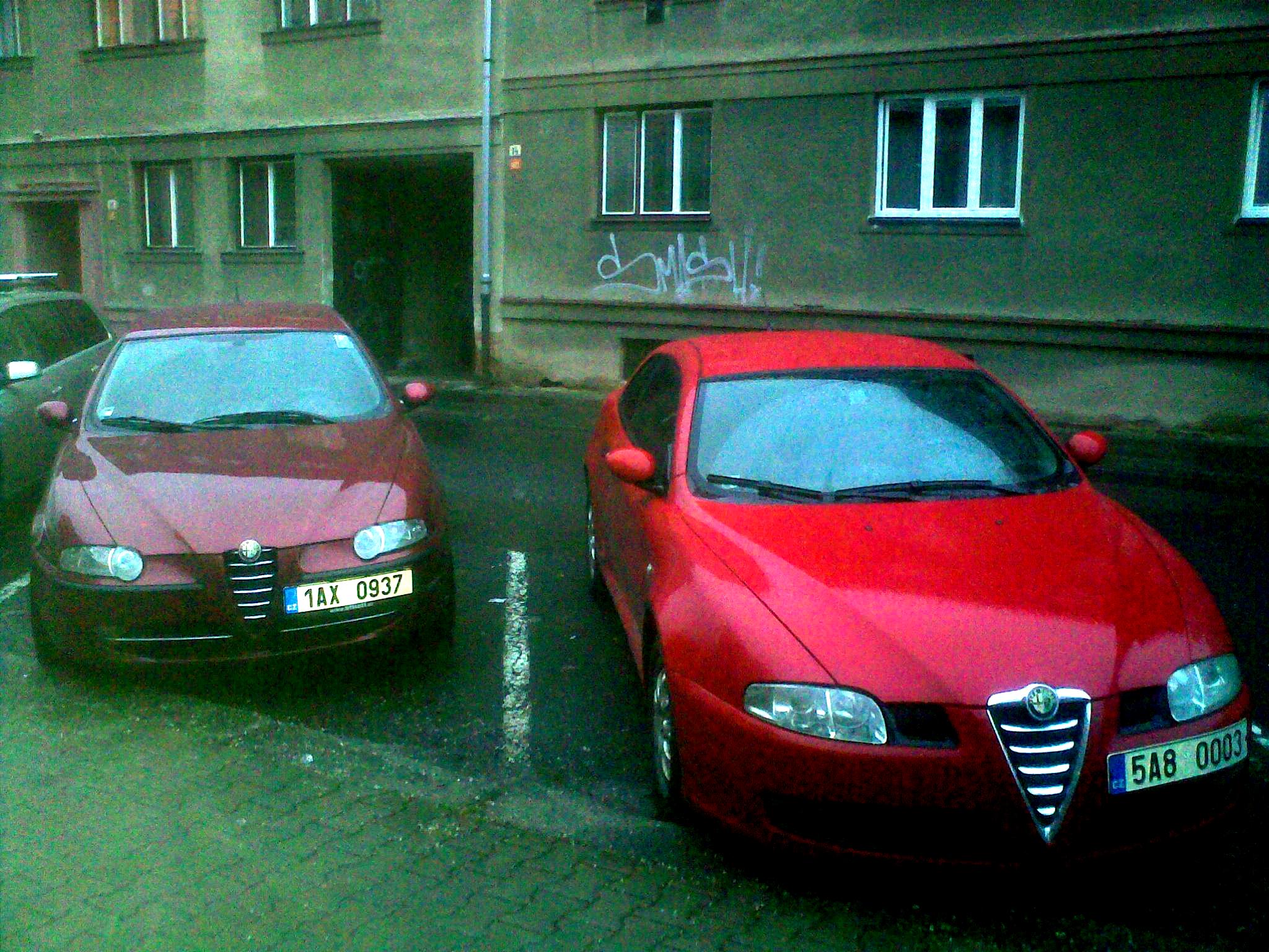 Udělali jsme mini srazík s Vavrusamem u centra. Byla to paráda vidět mojí starou 147 a nové GT pohromadě. Akorát ji nový majitel naleštil a navoskoval a GT po cestě z Prahy vypadalo jako prasátko. Ale bylo to fajn