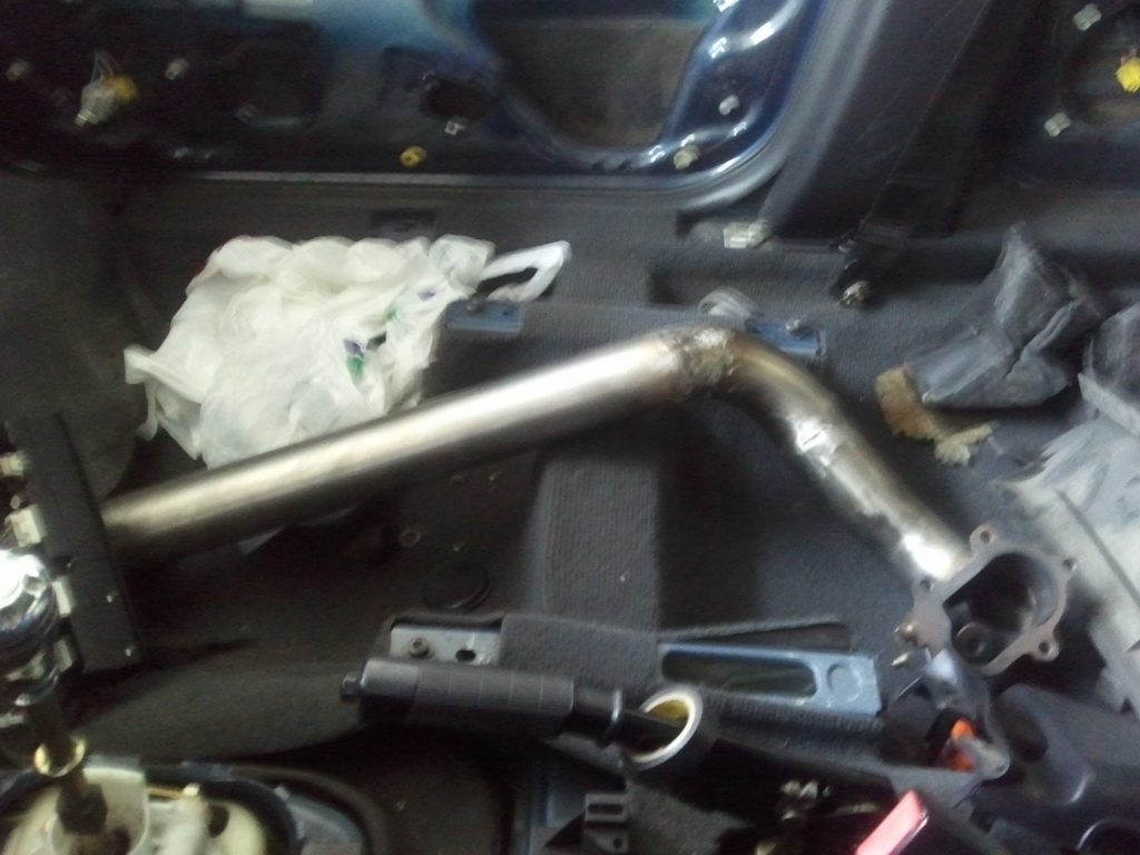 - je vytvořen svod výfuku pod auto, dále je připraven vlnovec a středový tlumič, koncový tlumič se ještě doobjedná. Výfuk by měl být během tohoto týdne hotový