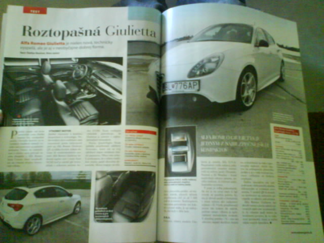 napodiv som tam vsak nasla velmi pozitvnu recenziu na giuliettu a tak isto v sekcii "jazdenka" celkom pozitivny clanok na 147 FL 1,6 TS 88kW + ako titulok znaci clanok o 4C a zase KLADNE rakcie az na jednos skonstatovanie ze interier nebude taky ako bol predstaveny v koncepte, ale "normalnejsi" ktory sa bude priblizovat doterajsim modelom...