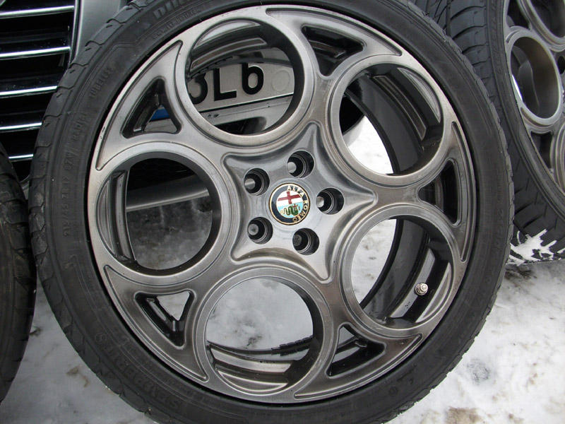 z té fotky vidím prd, ale šel bych do klasiky - přesně jak píšeš. Moc chromu se na Alfu nehodí a tmavé kola na tmavém autě já osobně hodnotím jako nesmysl - "kola dělají auto" tak proč je schovat tmavou barvou?
