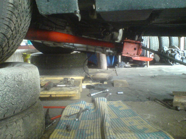nacpi mezi kastli a nápravu nůžkový hever a trochu si oddal nápravu s převodovkou od kastle