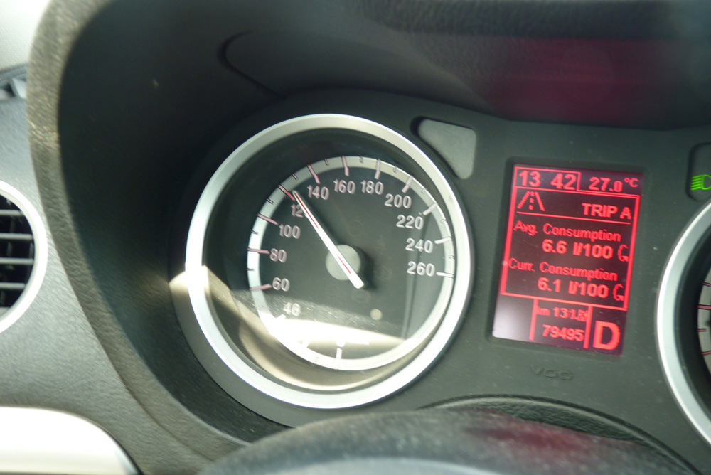 Prikladám dôkaznú fotku, že Q-Tronic dokáže byť pri ustálenej tempomatovej rýchlosti krásne úsporný :-)