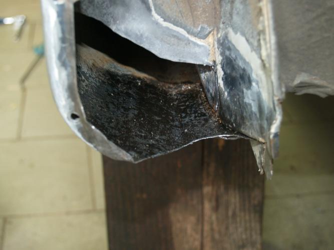 Viděl jsem to už u spousty 147 z prvních ročníků, z venkovní strany to připomíná povrchovou rez na lemu, tak jsem dal dolů podběh, vyhrabal hrsti hlíny a prachu a našel takovou spoušť, která tam tiše roste... Pravej byl ještě OK, levej byl prohnilej durch a v prahu byla hlína.... z venku není nic vidět