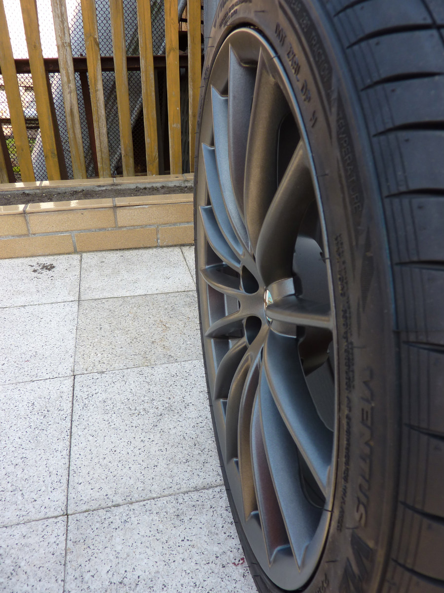 Díky díky. Přesnej název neznám, ale prostě grafitová černá. Ta barva je dost specifická tím, že není ani matná ani lesklá. Hodil jsem kámošovi fotky z té červené Dubaiské 3.2 GT a pár dalších co jsem na netu posbíral a že bych to chtěl stejně. Tak mi to udělal takto. Mé vysněné kola! Škoda jen, že se nedělali i v 19"