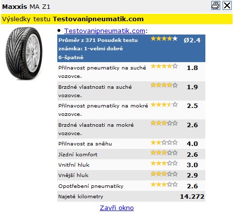 Jednalo se o MA-Z1 v rozměru 195/50 R15, ale co jsem viděl tak se snad dělají i dvacítky.