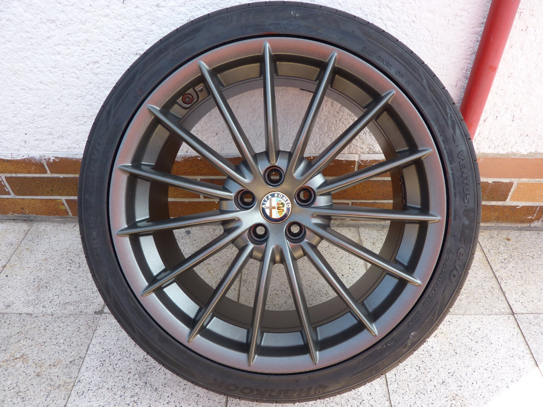 Díky díky. Přesnej název neznám, ale prostě grafitová černá. Ta barva je dost specifická tím, že není ani matná ani lesklá. Hodil jsem kámošovi fotky z té červené Dubaiské 3.2 GT a pár dalších co jsem na netu posbíral a že bych to chtěl stejně. Tak mi to udělal takto. Mé vysněné kola! Škoda jen, že se nedělali i v 19"