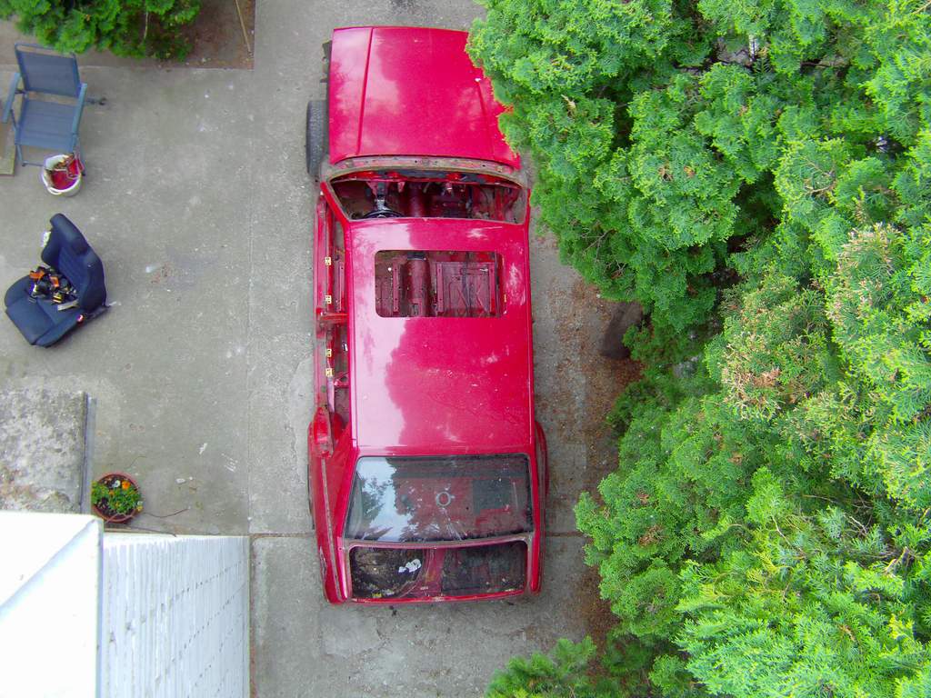 interier nakomplet vonku, plus nadrz. Najblizise von technika, a ostava este zadne sklo. A vyriesena zahada ako sundat horne listy, a vyriesil ju KGB, dnes prisiel k autu a vravi ze co som nesundal aj listy, ze pod tym tesnenim su nity ktore treba odvrtat a je