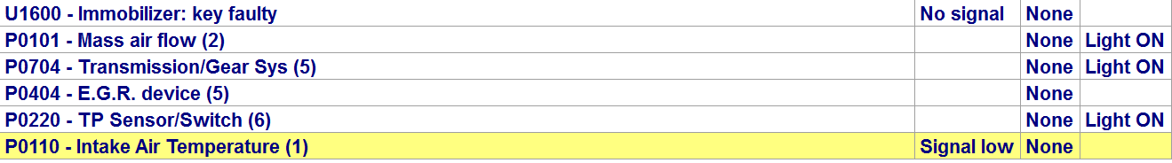 Takze jestli se nepletu tak chyba P0110 -IAT souvisi take s vahou vzduchu, takze jsou tam 2 chyby kvuli vaze.