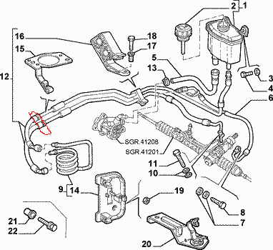 našel jsem dnes pod autem také pár kapek. Když jsem vlezl pod auto - vypadá to , že mi servo olej utíká ze stejného místa , jako je označení červeně na obrázku.