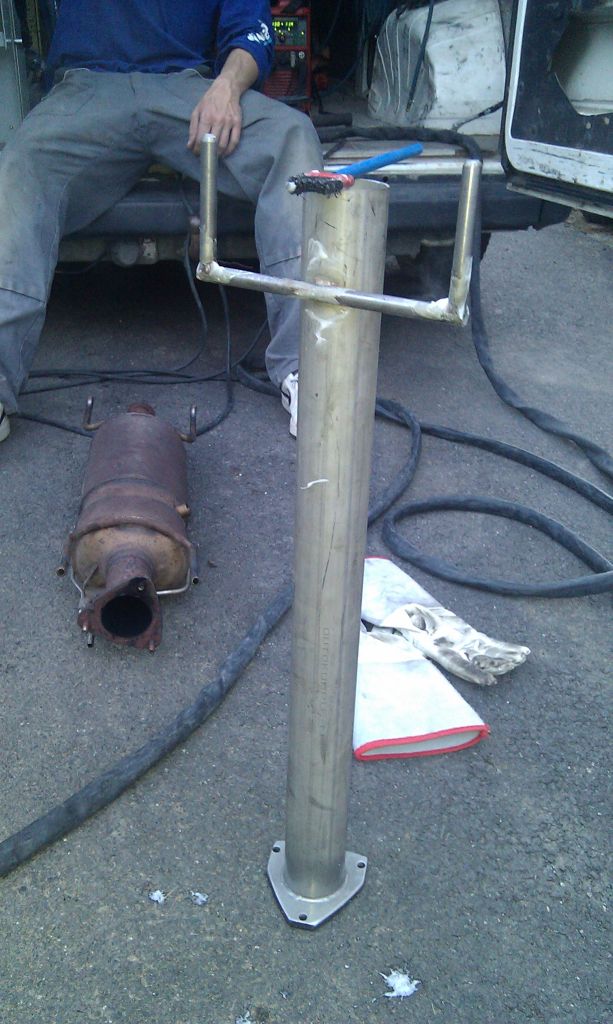 Svařovla kolega v monterkách a bylo to TIGem, čili nic neprskalo. My jsme jenom s úžasem přihlíželi. Úplna pohoda. Jinak, čistá výroba mezikusu byla cca hodinka. dele to netrvalo. Plus samozřejmě demontáž DPFka a nahození mezikusu.