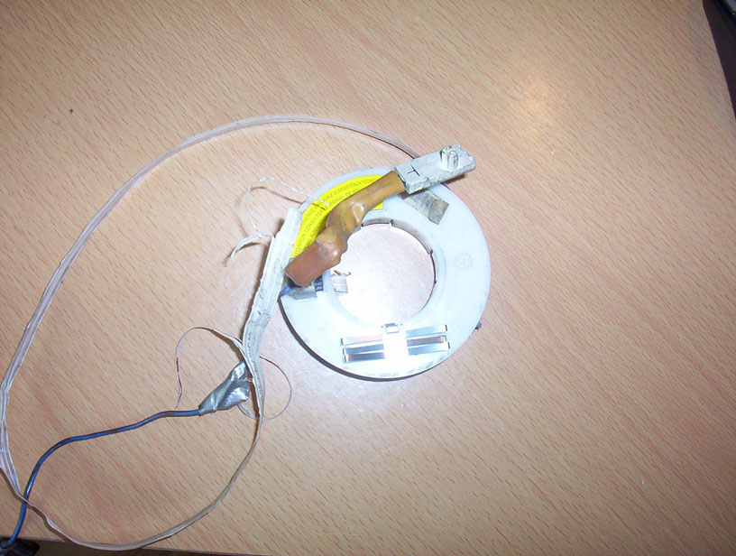 Je to kroužek, ve kterém je stočený umělohmotný pásek a vněm 3 měděné dráty, 2 jsou bag a jeden podle mě spíná houkačku ( zřejmě spojuje - na kostru přes tlačítko).