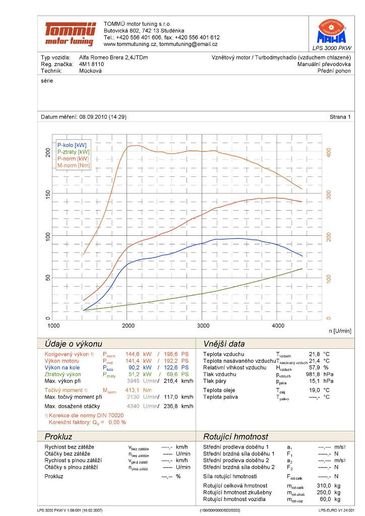No..není to tak hrozné...já mám 144,6kW a 413Nm :-) to je měřeno s dpf filtrem..ještěEnvel píše:S tím chipem je to trochu zložitější, problém se spojkou je samozřejmě krouťák - tyto extrémní chipy mají kolem 500Nm(i trochu víc) a to je na hraně schopností standardní spojky. Co jsem slyšel, tak z vyjmenovaných značek opravdu nejvíc vydrží ten Sachs, ale osobní zkušenost nemám(doufám, že ani mít nebudu). Ohledně toho výkonu bych si nebyl tak jistý, že tam nemůže mít nárůst 50 koní, jelikož má tu 154kW variantu, která se s turbem Garrett údajně líp chipuje. Problém ale je, že tam těch 260 koní nebude hlavně proto, že ani v originálu nemá 2,4 to co slibuje. 147 verze má spíš tak 140 a 154 kolem těch 147 a to jen v případě, že je všechno v naprostém cajku. Tento závěr nemám ověřený vlastním měřením na brzdě, ale před chipováním jsem možnosti motoru konzultoval s několika tunerama abych zjistil co nejvíc info a i když měli hodně rozdílné názory a postupy, tak na jednom se vzácně shodli, že jak 1.9 16V, tak 2.4 20V mají udávané hodnoty proti konkurenci nadsazené, že v reálu na brzdě je to o cca 10 koní míň, přičemž konkurence to má často opačně. Pokud někdo máte auto změřené na brzdě, tak klidně dejte své výsledky, já do tohu už asi investovat nebudu, jelikož mi je jinak celkem jedno zda tam mám 200 nebo 220 koní, hlavně že to jede hezky a bez problémů. Až budu chtít opravdové žihadlo, tak si koupím nějaký zadohrab s benzínovým šestiválem.