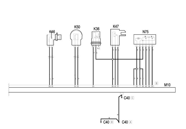 Jak vidíš na obrázku, K47 je propojen s K36 (Engine temperature sender unit) a N75 (Throttle body actuator), takže proto asi chyby všeho najednou, když je čidlo špatný.