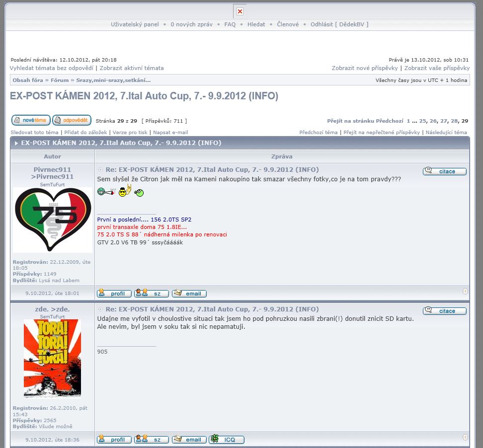 pokud vam ukazuje forum spatny cas, tak si nastavte v profilu v nastaveni UTC+1...