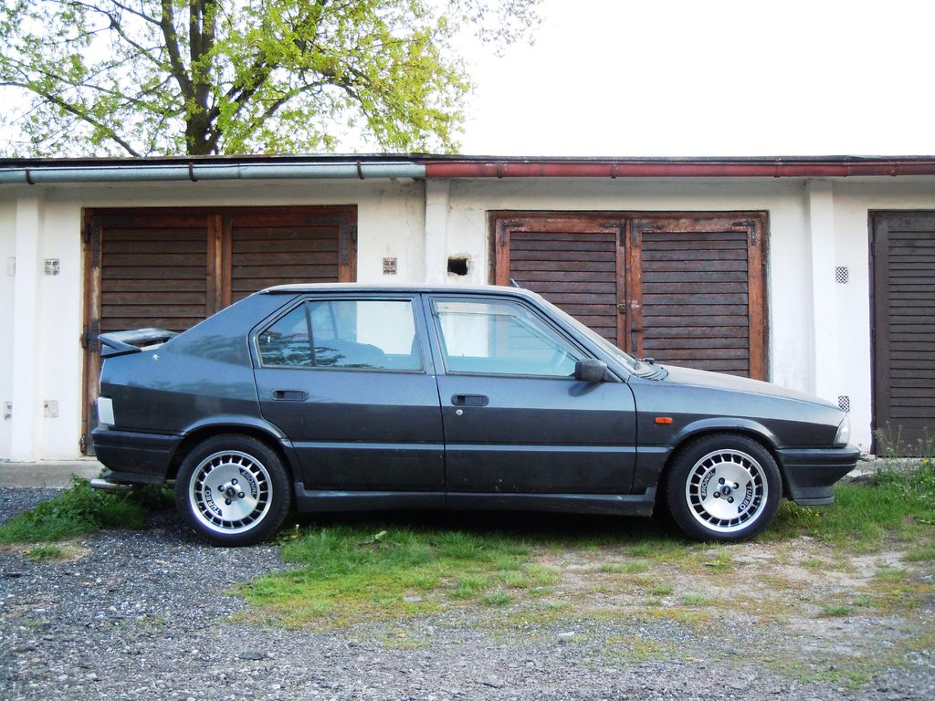 Alfa špinavá jak jetel (stála asi půl roku v garáži) s novými čistými koly z Německa
