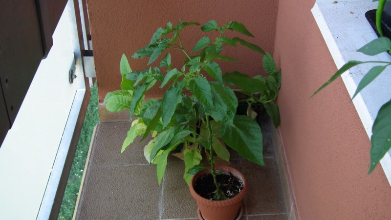Tak už mi zežloutla první paprička (habanero-žluté).