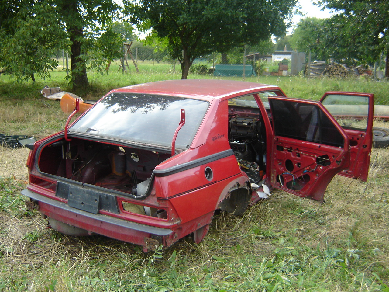 Tady je to trochu líp vidět. Nevím, jestli je origoš. Ta fotka je stará pět let, 75 byla dárce orgánů. Já jsem bral celý podvozek na Giuliettu a Laďa S. (kroměřížská Giulia GTA - místní znají) zas převodovku, něco z kastle a blbosti do Turba, zbytek šel do kontejneru. Takže jestli ten držák ještě existuje, tak je u něj.