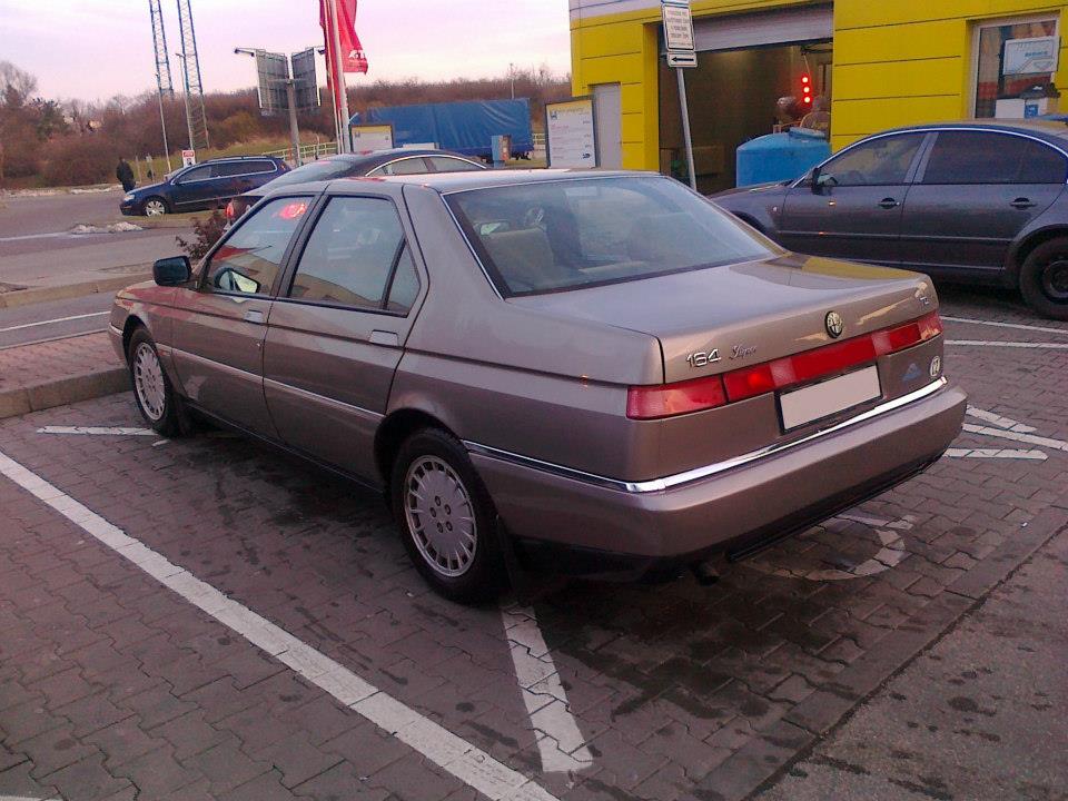 Tak bych Vám chtěl konečně představit svoji Alfu. Jedná se o 164 Super vyrobenou ke konci r.92. Mám ji od půlky prosince, chtěl jsem si udělat hezké vánoce =D> . Pořídil jsem ji od staršího chlapíka, který ji měl jako víkendový auto. Prodával z důvodu, že potřeboval auto na pole. Měl ji cca 8 let. Auto bylo garážovaný. Lak je tam dobrý, ale místy jsou škřábance z běžného provozu. Auto má najeto 232000, ale jak zvenčí tak uvnitř to nevypadá. Už jsem měl jeden problém s elektrikou, dal jsem to k chlapíkovi na Libuš, Zjistil že je to problém se spínačkou a následně i vyřešil. Tu přihazuji nejaké fotky