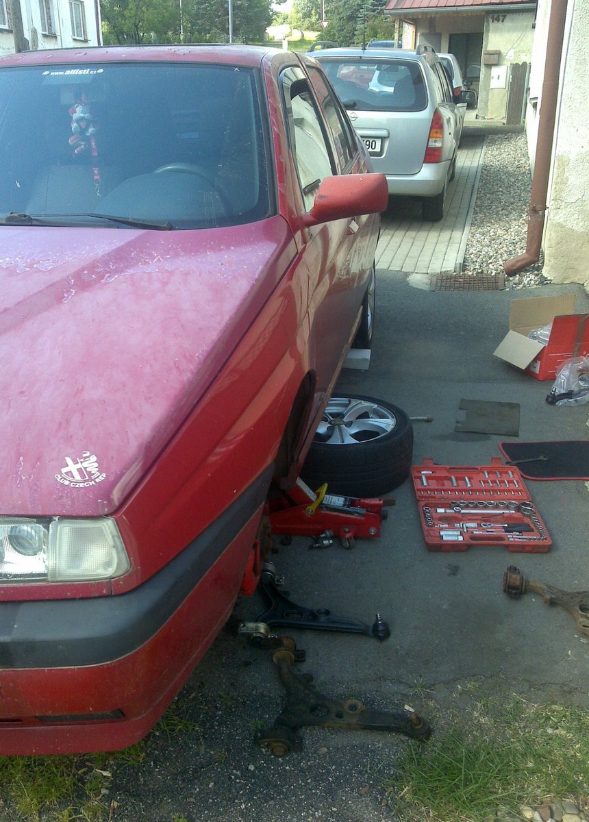 , ale nemám na to čas . Na ramenech už byly v čoudu silenty, pěkně to vrzalo, holt daň za sportovní podvozek a nízkoprofilový gumy, měnil jsem ramena na obou stranách, na tý první fotce je vidět i kus druhýho ramene