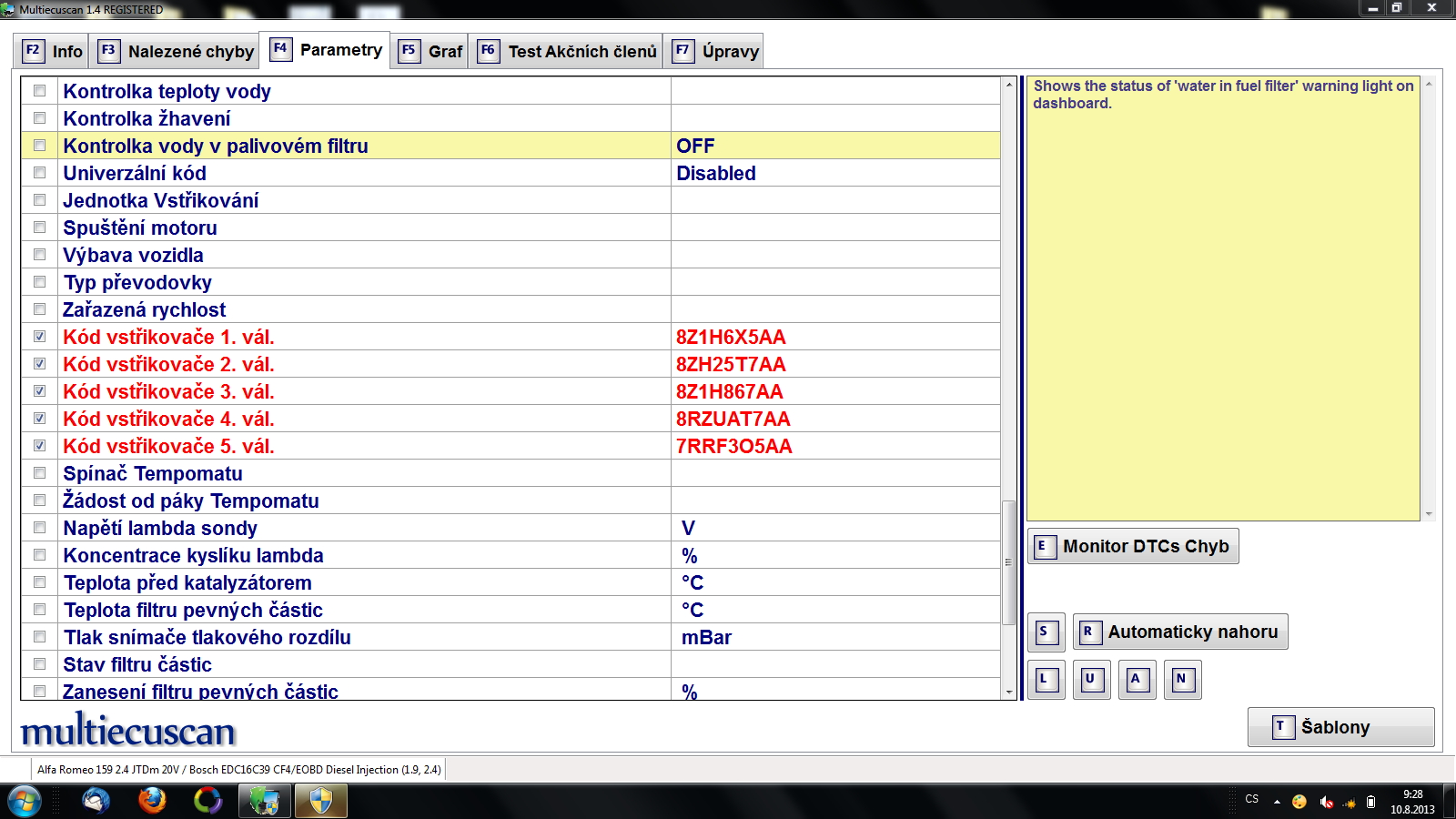 jardajr : ty hodnoty jsou OK, a ty písmena by měli být stejný i na každém vstřiku, podle té diagnostiky