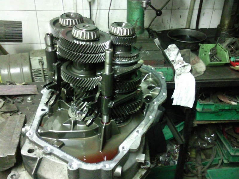Po rozdělání převodovky, jsou spatná obě kuželový ložiska diferáku.