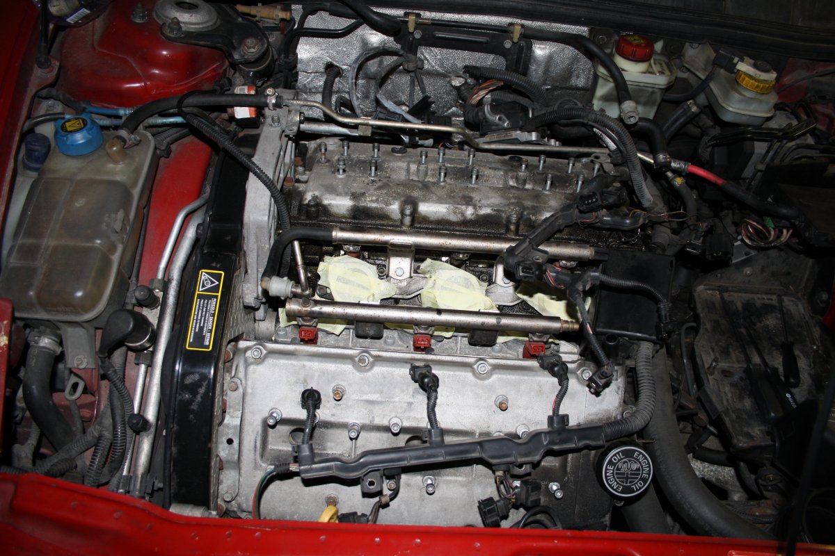 Díky, dnes bez fotek, v podstatě jen vypuštění vody, konečné odstrojení elektriky (bude potřeba nahradit rozpadlý kousky husího krku o nejmenším průměru - kabely ke vstřikům a cívkám), shození řemene pomocných rozvodů a kladek, vodní pumpa už má nejlepší za sebou - vůle jako sviň, ale ještě neteče, takže akce se podařila tak za 5 minut 12. Jinak svíčky byly Bosch, dám NGK Platinum. Zejtra bude pokračování i s foťákem a malou pomocnicí