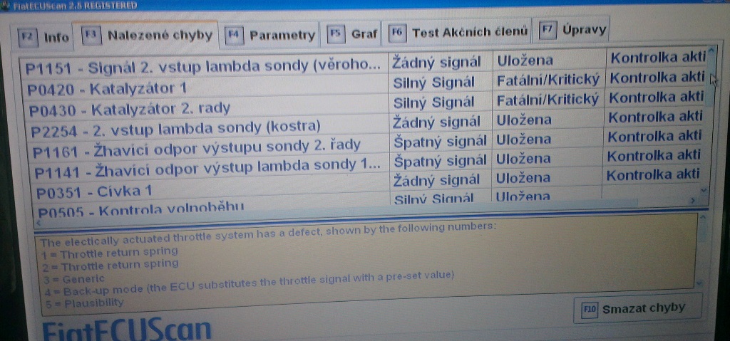 jinak tohle mi Petr poslal:Jak na to koukám, tak to spolu asi souvisí, máš chyby na vstřikovačích, to pak dává špatné katy a lambdy... Takže bych začal palivovou soustavou, vstriky repasuje jetservis.cz za pár korun, kouknout na kabely od svíček, svíčky... To je tak co si muzes udělat sám, pak lambdy tam máš 4, takže dat kouknout které jsou špatné, jestli neni nekde urvany drát podle chyby kostry, dat dolů vyfuk a podívat se na katy... Pak kouknout na klapku... Pak čekat, co se ukáže... Treba ta chyba ridici jednotky je zajímavá... Hlavně stav rozvodů, ložiska na klice