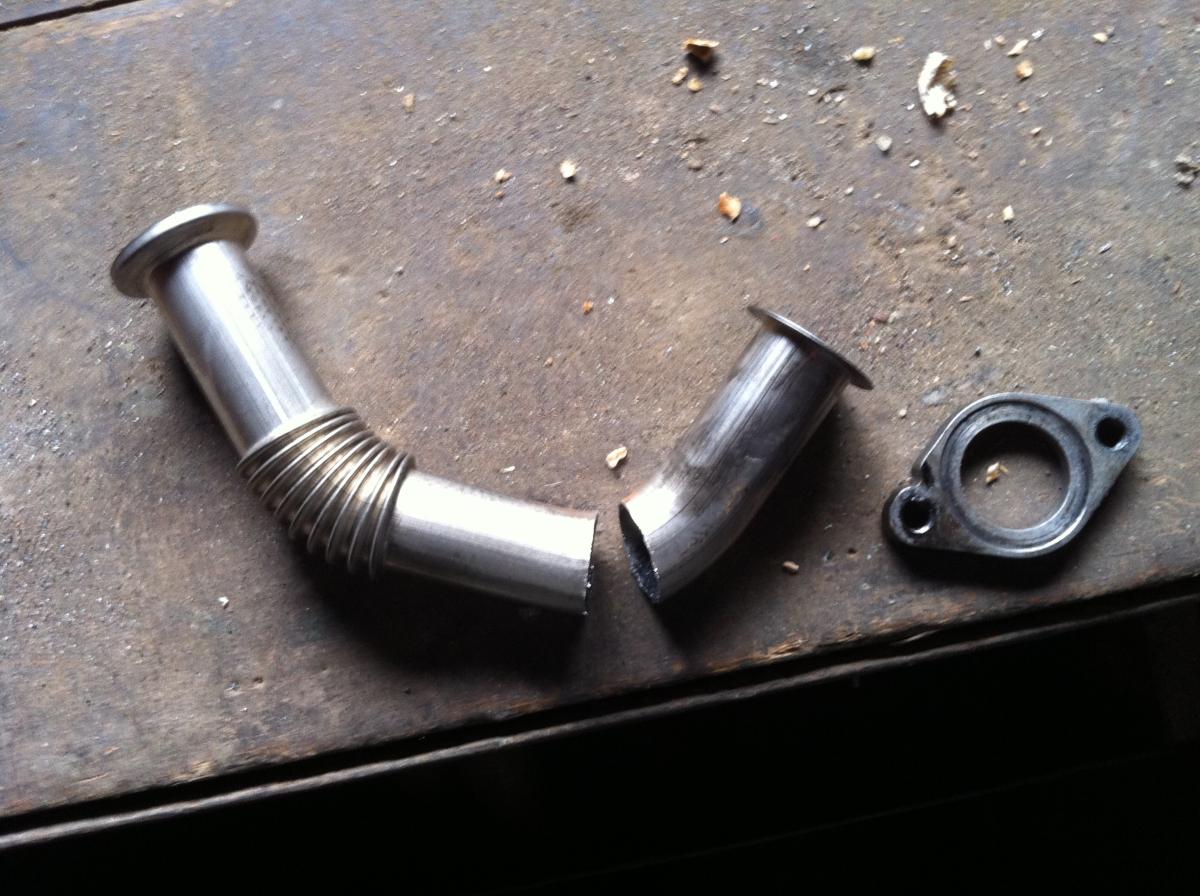 Jak zaslepku na svodech, tak zaslepku na EGRu jsem puvodne planoval zadelat "jen tak" ale nakonec jsem si to rozmyslel. Napadlo me ze bych zaslepky podlozil puvodnima prevlecnyma "patkama" z trubek chladice spalin. Tak jsem take udelal. Trubky EGRu jsem rizl, patky vysvobodil a pouzil. Myslim ze je to tak lepsi. Extremni teplo a tlak by mohl ze zaslepkou nasvodech udelat pekny cirkus, na EGRu jsem to zase udelal abych nemusel davat na zaslepku maticky, bylo by to nesikovne a pripadna demontaz by byla otresna.