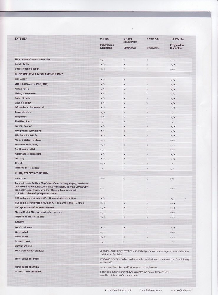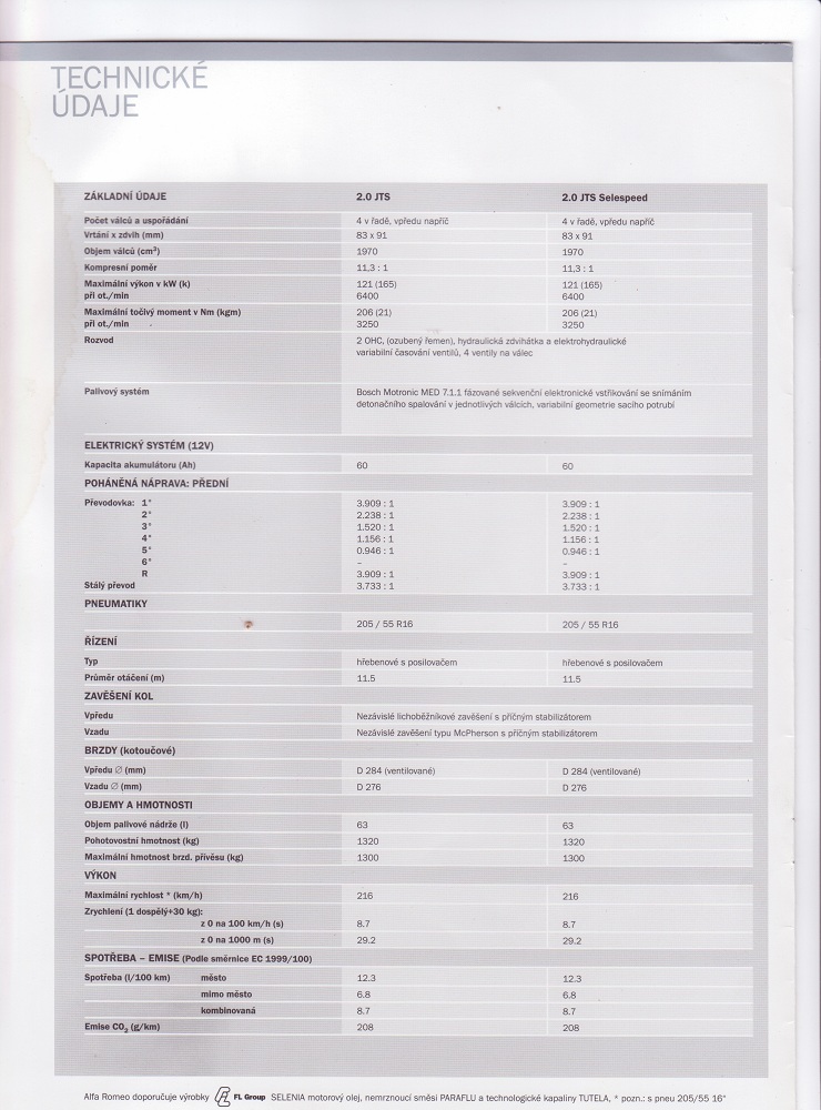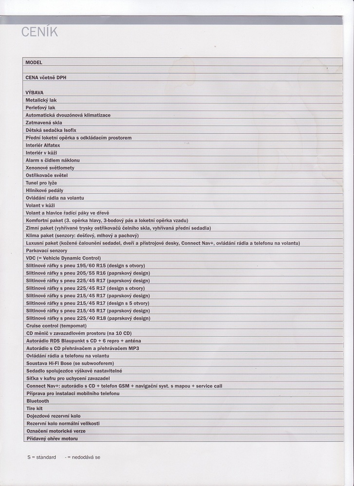 Technické údaje, standartní a doplňková výbava - 05/2005