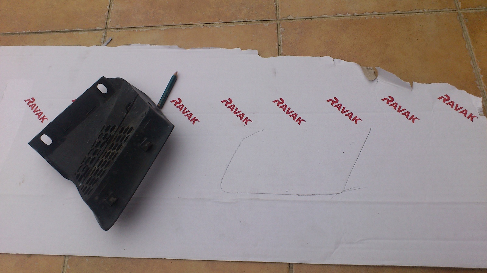 "Karton" tam strčit nejde, protože ho neni kudy nacpat (bez sundání nárazníku).