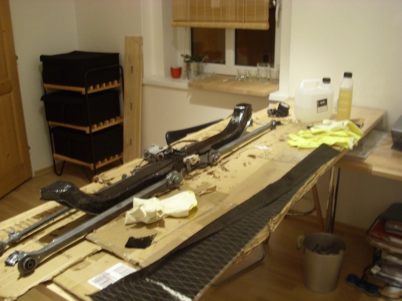 Původně se totiž jednalo jen o pojízdného dárce náhradních dílů, ale je s ní taková pr.del, že bylo jednohlasně rozhodnuto, že nepůjde pod flexu..a naopak se dodělalo všechno co bylo pro "režim řádění" nutnýho--servo řízení, ramena + bižuterie okolo , zadní zavěšení komplet,pružiny , brzdy.., vejfuk ., váha,lambda svíce.. selenoid neutrálu ,.něco okolo nutný elektriky../však to znáte ../