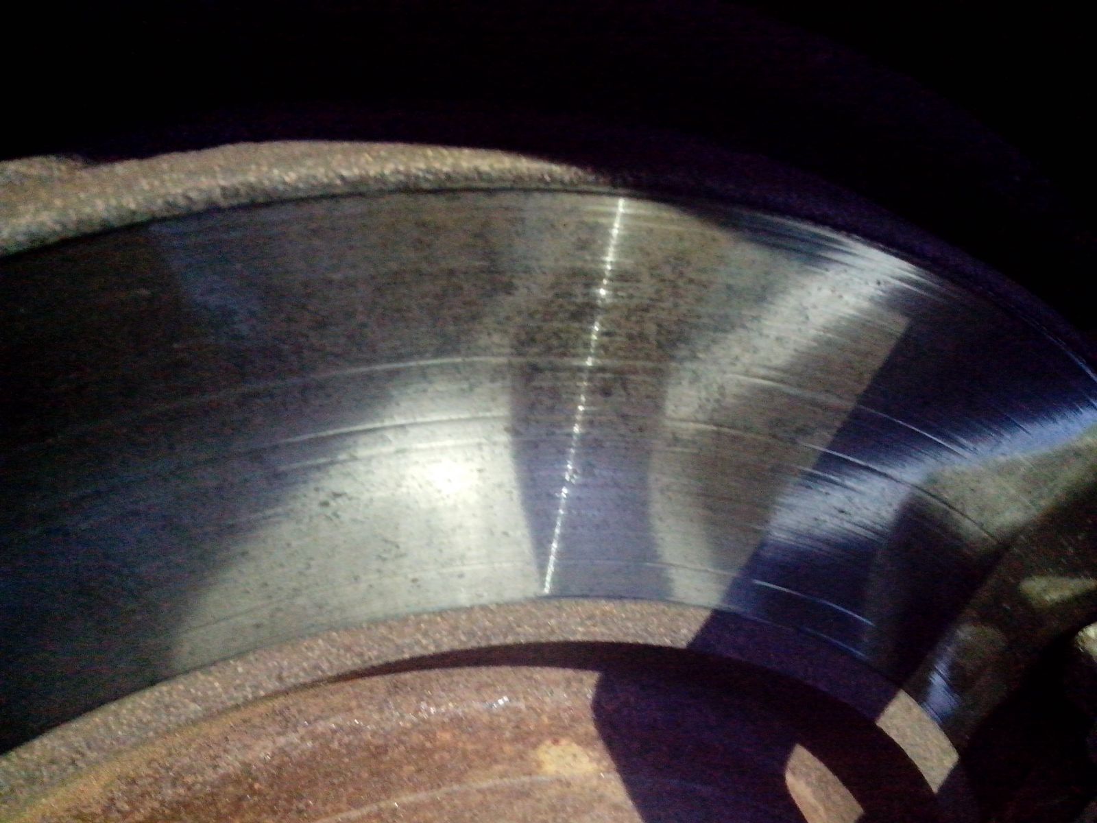 Před cca 10 měsíci jsem měnil kompletně brzdy TRW (přední i zadní kotouče včetně obložení). Od začátku jsem pociťoval, že má ručka menší účinnost, ale snažil jsem se tomu nevěnovat pozornost. Čekal jsem, že si to sedne, což se ovšem nestalo. Už od začátku bylo patrné, že zatímco přední kotouče jsou na třecí ploše krásně čisté, na zadních jsou v odlitku smítka tmavého materiálu (viz foto nevalné kvality