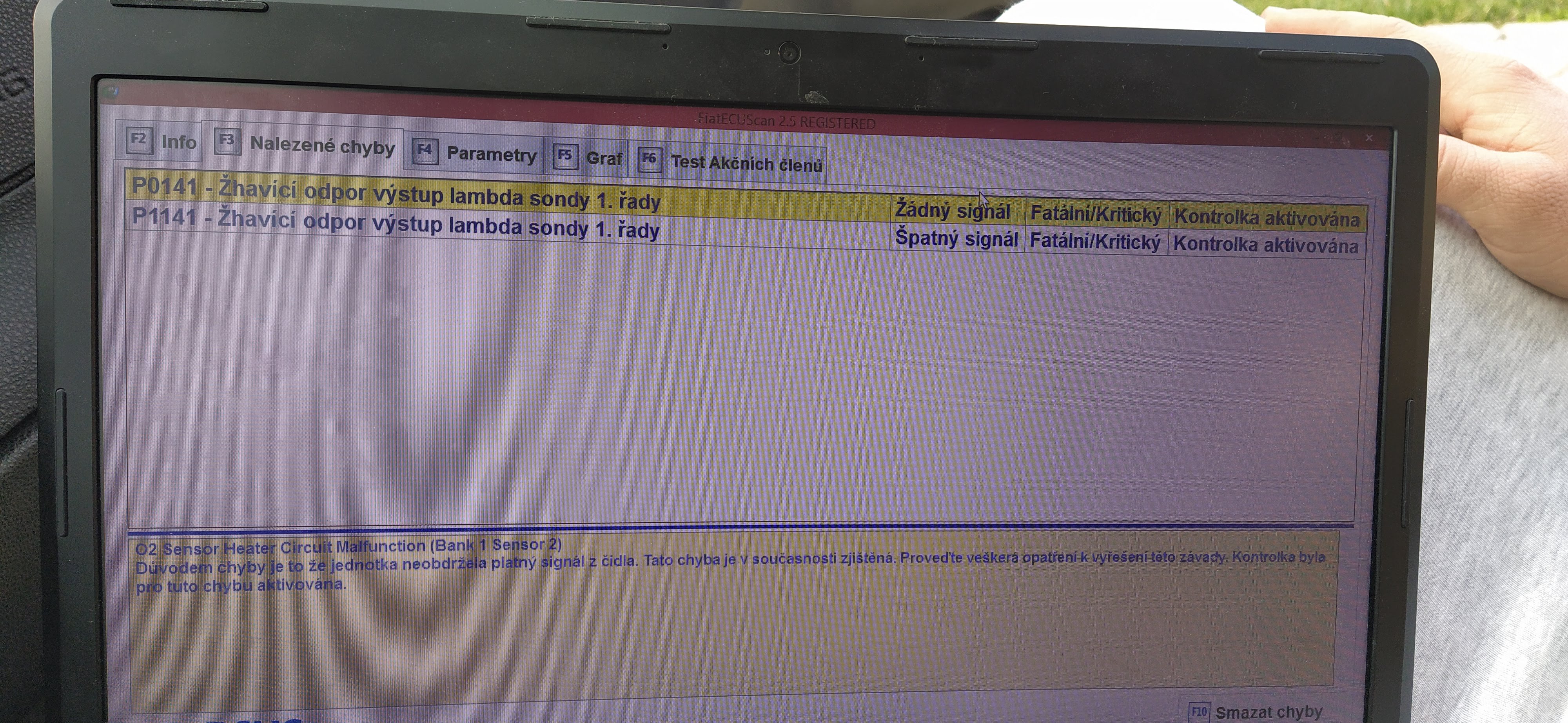 potřebuji poradit ohledně lambda sondy. AR156 2,5 V6 141kw. Svítí kontrolka motoru, FES hlásí chybu viz foto P0141, P1141(ta se zatím po výmazu zavad znovu neobjevila). Odpojil jsem postupně obě lambdy za katem, vypadá to že je to ta poslední úplně na konci. Konektor je čistý,nezoxidovany. Máte s tím někdo zkušenost? Jestli mám rovnou objednat tu poslední lambdu a vyměnit, nebo to může způsobovat i něco jiného??? Případně da se nějak proměřit ještě? Jaké má mít hodnoty? Koukal jsem že ve FESu se dá proměřit, i graf je tam, ale nevím jaké mají být správné hodnoty. Nikde jsem to nenašel.