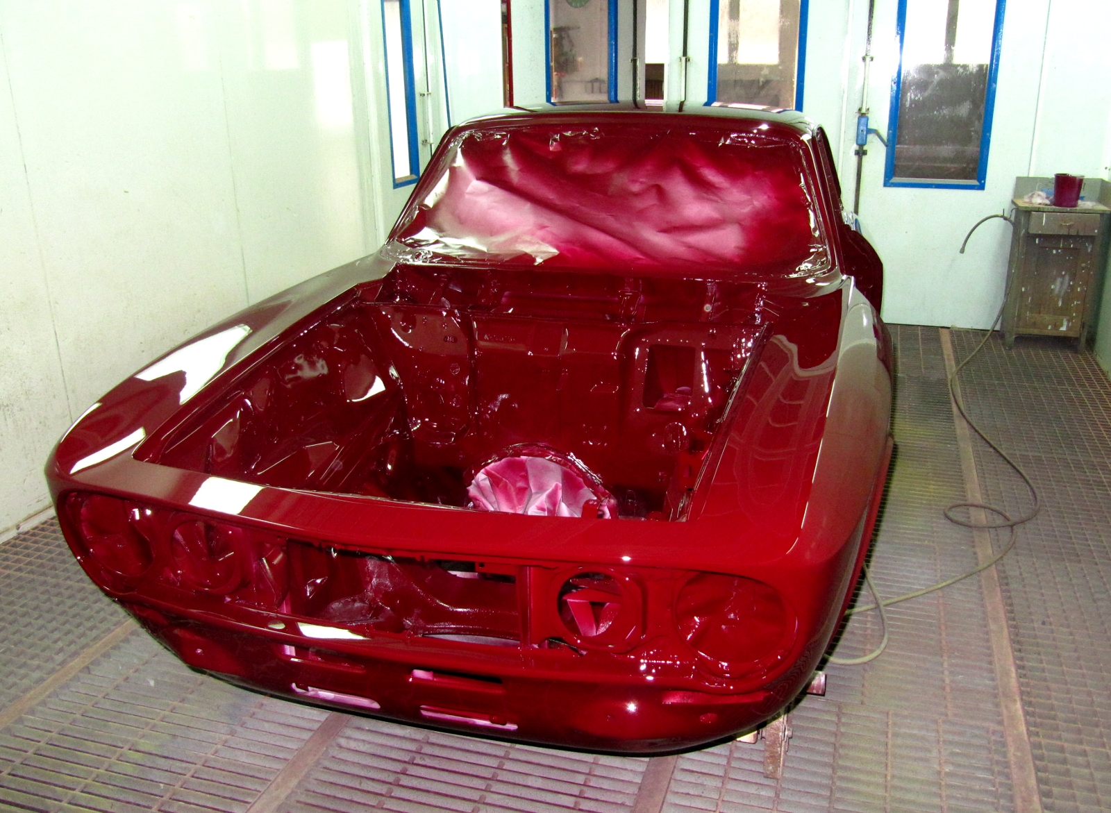 Maličko jsme postoupili,zkompletovala se hlava a pomalu se začlo dělat na spodku motoru a nápravách.Zatim se natáhly brzdový trubky,namontoval posilovač,vylepila podlaha tlumícím materiálem a nalakovaly kola.