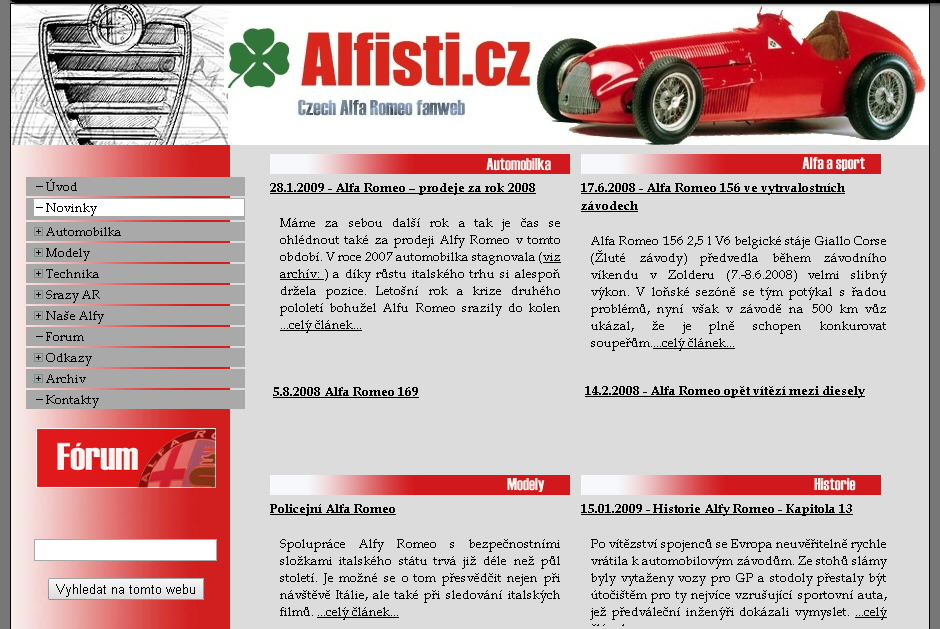 Už to nejede. To je záměr? Byly tam návody, na který se teď už nedá dostat. Podle mě je to celkem škoda...MaWa píše:Vzpomínat můžeš i bez slzy v oku zde http://www.alfisti.cz/old/" ...