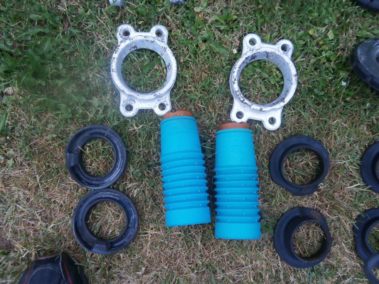 Zitra se budou konecne uz vylisovavat vsecny silentbloky a snad dokoncim nove brzdove hadice. Taky pridavam malinkou ochutnavku nejakych veci, ktere jsou pripraveny na zpetnou montaz. Je toho malinko. Vlastne vse krom deklu co muzu umyt a nebude to podstupovat zadnou povrcovou upravu. No jeste to je dlouha cesta, ale rysuje se to.