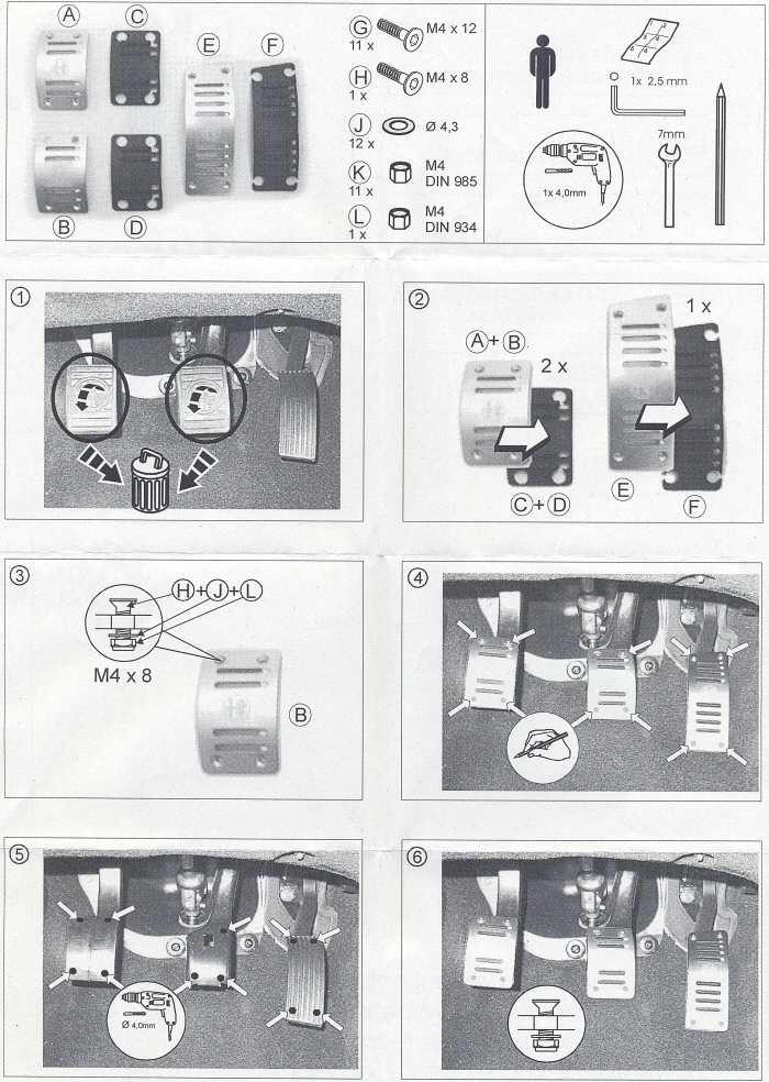 samozřejmě originál příslušenství Alfa Romeo. Kromě pedálů obsahuje balení i všechny potřebné šroubky, podložky a bezpečnostní matky s "třecí" vložkou proti povolení.
