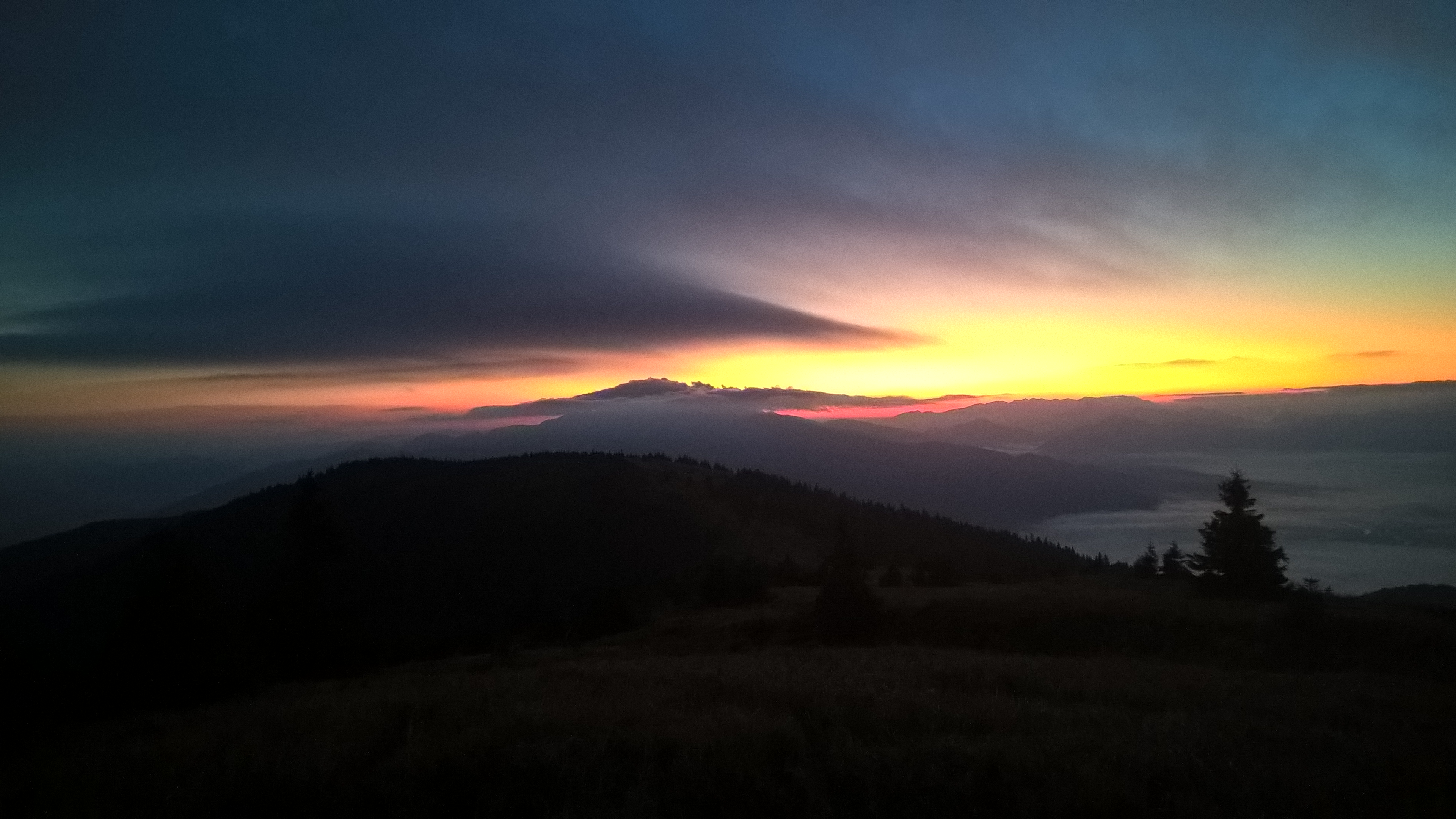 Turistiku třeba pěstovat a hlavně přes týden jsou kopce prázdné... naše spaní ze včera na dnešek a východ slunce.