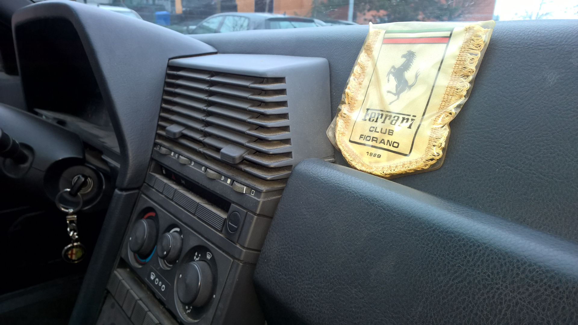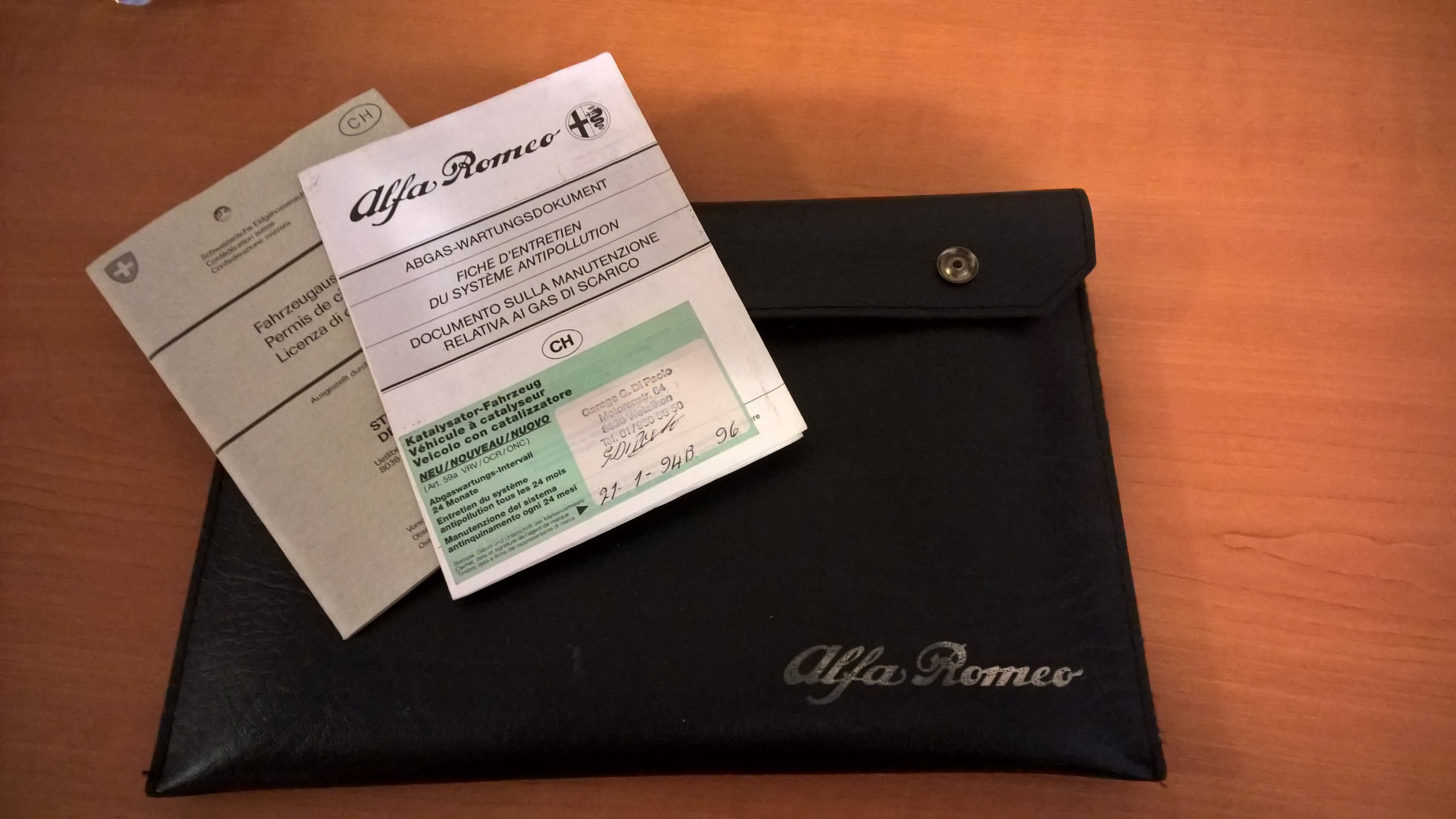 Předchozí majitel si jí přivezl v roce 98 ze Švýcarska, před tím prý vystřidal 3 33ky, tohle si nechal 20 let. Auto toho za posledních pár let mnoho nenajelo, nějakou dobu byly značky v depozitu, pak zas vyndány ale prý jen stálo v garáži a vyjelo tak 3x do roka. K autu jsem dpstal původní švýcarské papíry, vlaječku Ferrari Club Fiorano a údajně origo armádní italský pilotky brýle, těžko ověřitelné, ale jelo se s nima hezky :D.