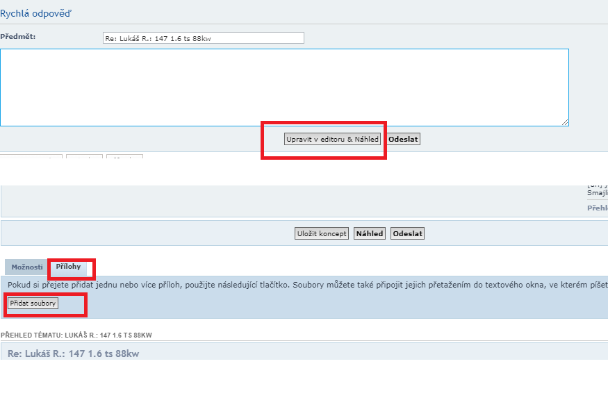 Nebo ta lehčí volba -> Klikni na "Upravit v editoru a Náhled" -> Přílohy -> Přidat soubory