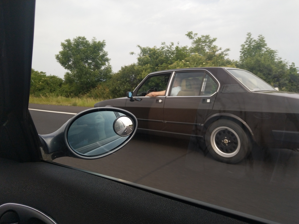 Cestu tam jsme si zpestřili malým závodem za Vídní s krásnou Alfettou