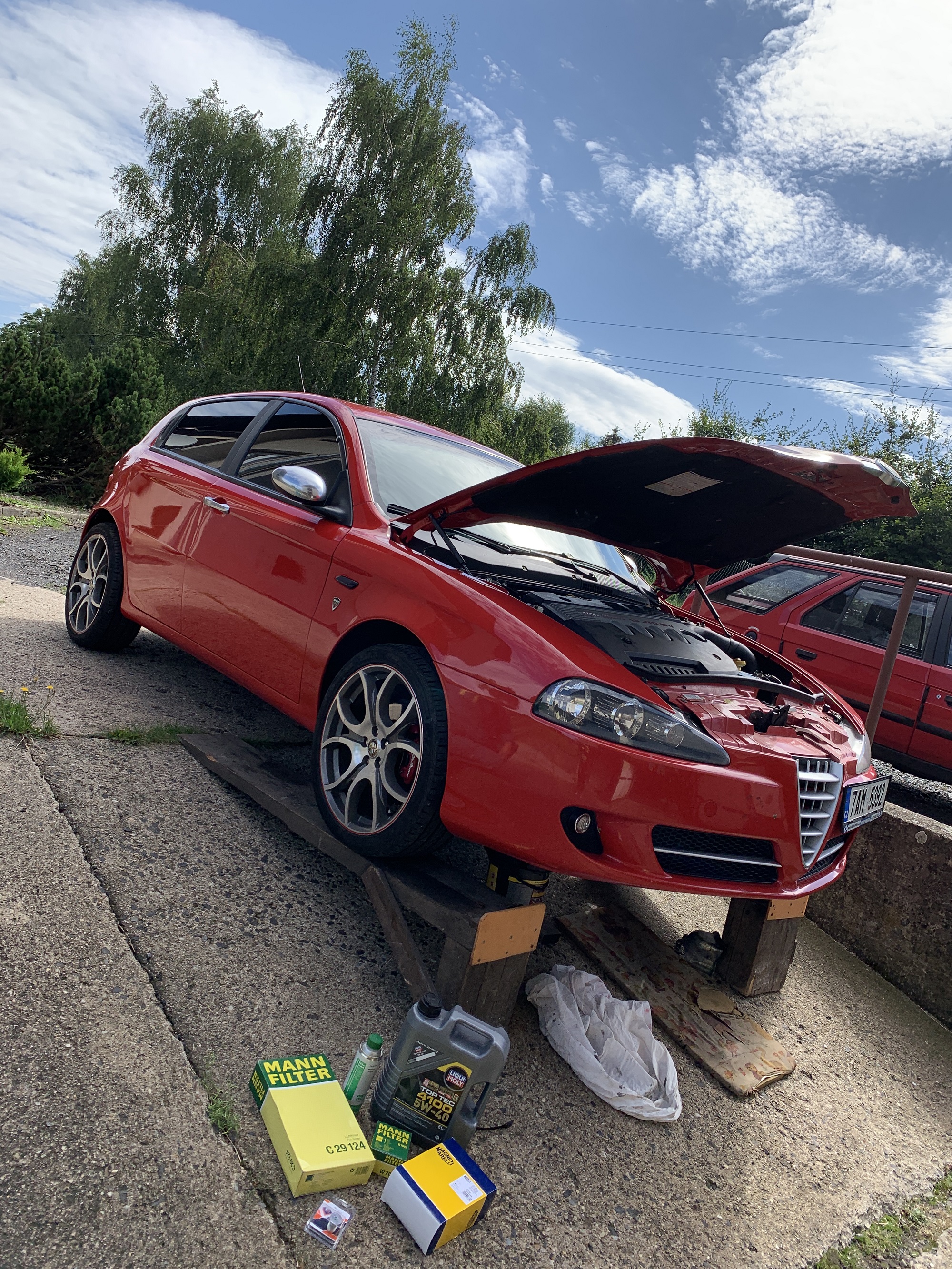 Můžu jen prozradit upgrade brzd na 330mm v předu a 276mm vzadu, bohužel mi ale před převozem dílů vykradli Giulii a tak jsem o veškerý material přišel včetně dalšího.. Pokus číslo dvě je ale zahájen